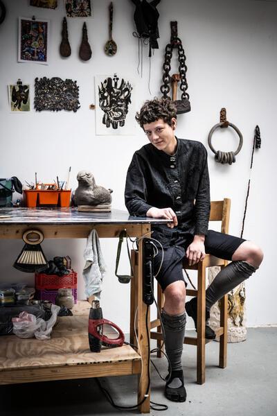 Justine Grillet (1998) maakt kunst uit noodzaak: “Als ik niets maak, ben ik ongelukkig. Als kind zijn we vaak verwonderd en houden we van verbeelding. Dat verliezen we gaandeweg. Ik hoop dat met mijn werk wakker te maken en levendig te houden.”