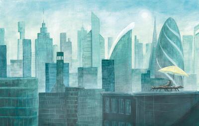 In de illustratie wil ik die paradox tussen ontspanning en dreiging weergeven. De uitwerking ervan deed ik in acrylverf op papier.